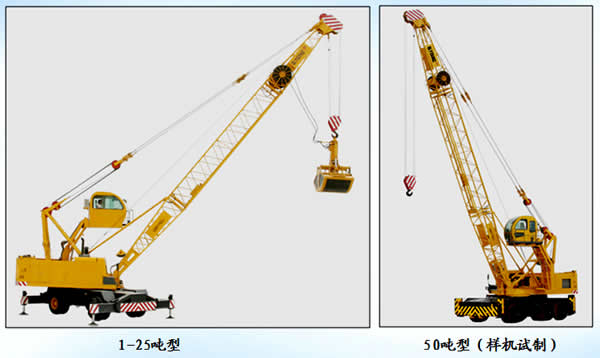 12—50噸液壓輪胎式桁架臂(抓斗)起重機(jī)已形成了系列化