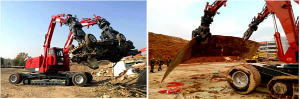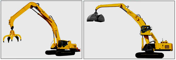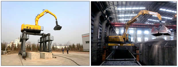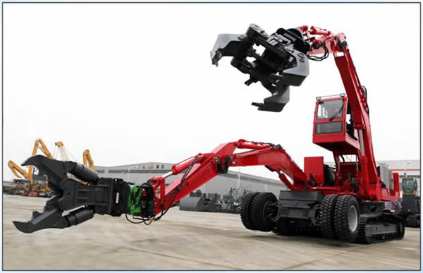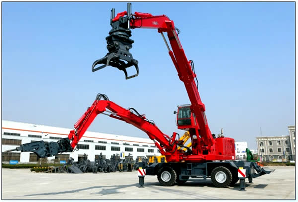 公司自主研制的6-20噸型“雙動(dòng)力”液壓輪胎式抓料機(jī)已形成系列化