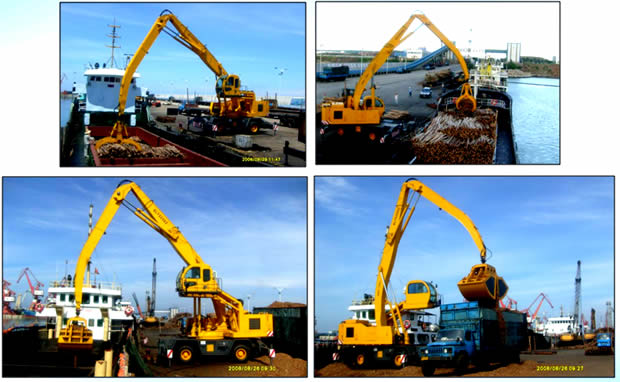 “雙動(dòng)力”輪胎式抓料機(jī)在木材木片專用港口作業(yè)工況介紹