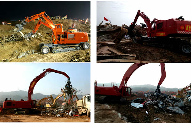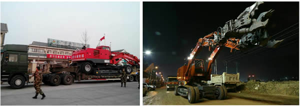 2015年12月23日,應(yīng)武警部隊(duì)要求,八達(dá)重工運(yùn)送雙臂救援機(jī)器人及抓料機(jī)設(shè)備,日夜兼程,以最快的速度趕赴救援現(xiàn)場(chǎng)。