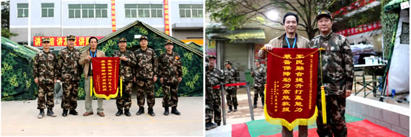 八達(dá)特種裝備在深圳滑坡事故現(xiàn)場(chǎng)救援過(guò)程中,發(fā)揮了不可替代作用,受到了國(guó)內(nèi)外媒體一致好評(píng)。圖為武警交通部隊(duì)現(xiàn)場(chǎng)領(lǐng)導(dǎo)向八達(dá)機(jī)器人救援隊(duì)負(fù)責(zé)人授予錦旗,右圖為傅凌司令員與公司劉總合影留念。
