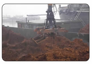 紅土鎳礦油電雙驅(qū)雙動力抓料機(jī)在港口碼頭啟用